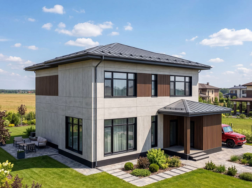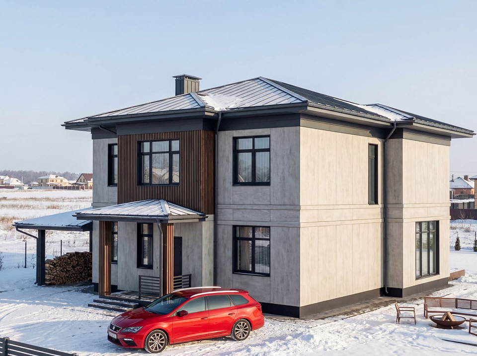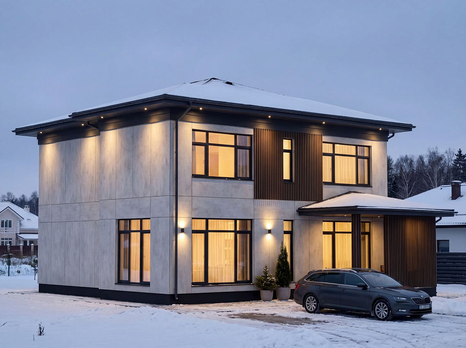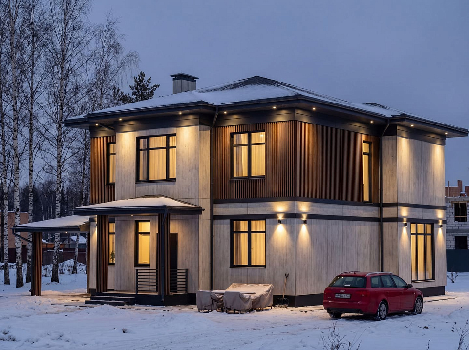 Представляем вашему вниманию дом наиболее популярного ценового сегмента "Птичное-2" спроектированный нашими конструкторами по результатам встречи с заказчиком в нашем офисе. Индивидуальность этого дома - огромные светлые окна, которые создают ощущение торжественности. Нужно сказать, что вопреки ошибочному мнению большая площадь остекления не являются причиной роста бюджета на строительство. Современные конструкции делают возможным увеличение высоты и ширины остекления, не снижая энергоэффективность дома.
