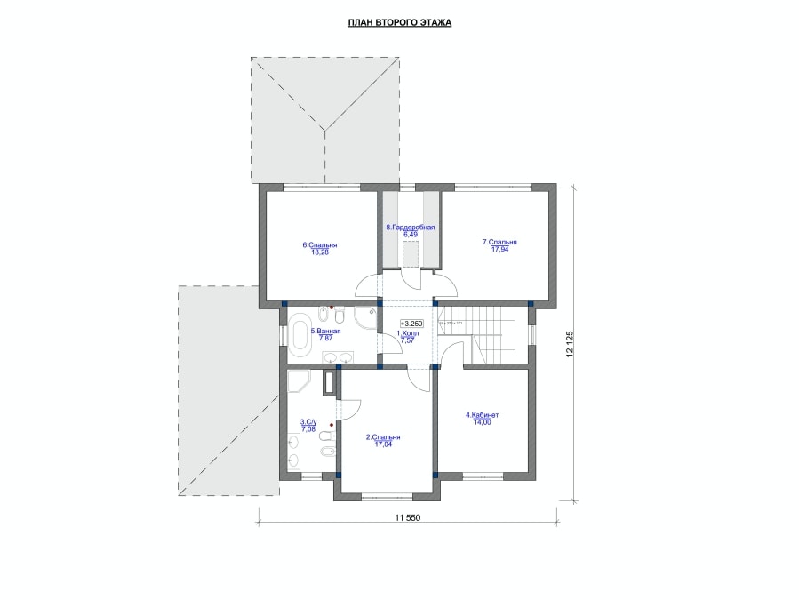 Проектом предусматривается двухэтажный коттедж и функциональный чердак. Планировка пространства дома выделятся продуманностью и принимает во внимание размещение инженерных систем, вид из окон и расположение сторон света. Проект дома включает 5 удобных спален и 3 санузла. Размер всех помещений дома составляет 250 м2, размер кухонного пространства 9 м2. В данном проекте мы рекомендуем использовать вариант фундамента - УШП фундамент. Это самый современный фундамент, великолепно подходящий для коттеджного строительства в нашем холодном климате. Несущие стены этого проекта - полнотелый кирпич. Мы можем изменить этот проект под другой материал несущих конструкций, уточнить внутреннее пространство коттеджа и принять по внимание другие условия заказчика.
