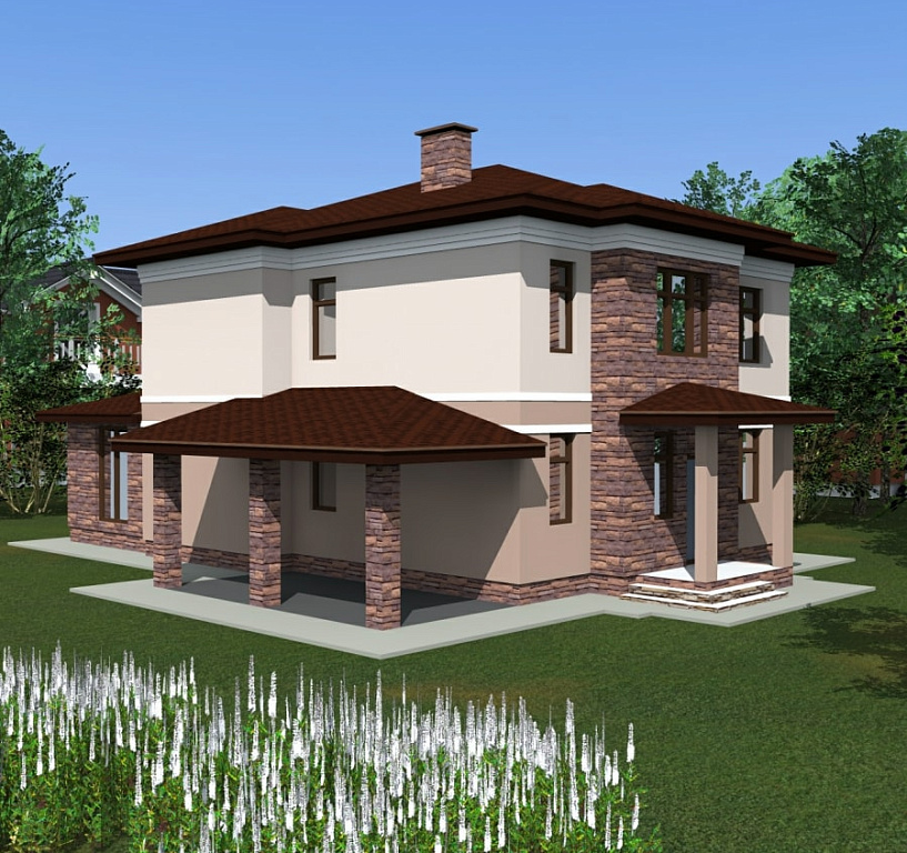 Дом из полнотелого кирпича Певчее-3 двухэтажный 13х13