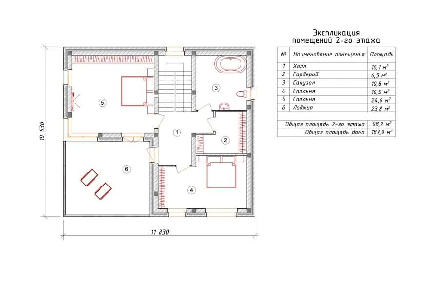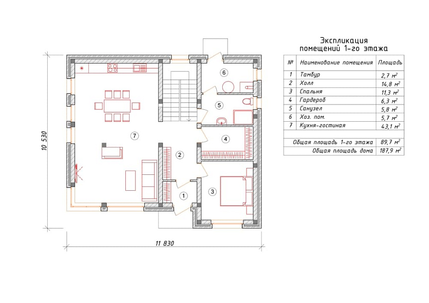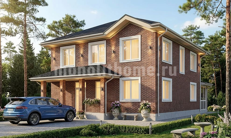 Проектом предусматривается двухэтажное строение и плоская крыша. Компоновка жилых помещений характеризуется функциональностью и принимает во внимание размещение инженерных систем, вид из окон и расположение сторон света. Поэтажные планы предусматривают 3 комфортных спальни и 2 санузла. Площадь всех помещений - 188 м2, размер кухонного пространства 20 м2. В данном доме мы предусматриваем вариант фундамента - УШП плита. Это самый теплый фундамент, великолепно подходящий для загородного строительства в нашей климатической зоне. Несущие стены данного здания - несъемная опалубка. В случае необходимости мы можем переделать данный проект под другой материал, переработать поэтажные планы дома и учесть любые другие ваши условия.