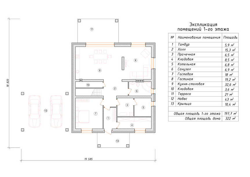 - Размер дома 14х14 м