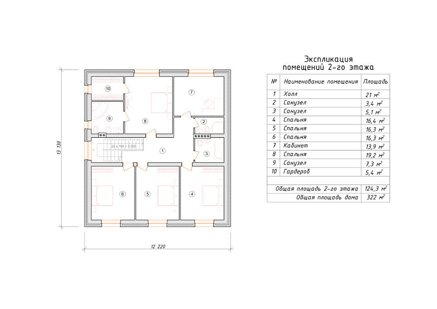 Дом в два этажа с полезным чердаком. Планировка этажей выделятся продуманностью и принимает во внимание размещение инженерных систем, вид из окон и расположение сторон света. Планировочные планы предусматривают 5 комфортных спален и 4 санузла. Размер всех помещений дома - 322 м2, площадь кухни 33 м2. В данном коттедже мы предлагаем применить вариант фундамента - бетонная мелкого заложения лента с утеплением ЭППС. Этот тип фундамента отлично подходит если в пятне застройки большой перепад уровня земли, или хозяин требует приподнять над землей высотную отметку комнат. Материал стен этого коттеджа - несъемная опалубка. В случае необходимости мы можем переделать проект под другой материал стен, актуализировать расположение комнат дома и рассмотреть любые другие ваши условия.