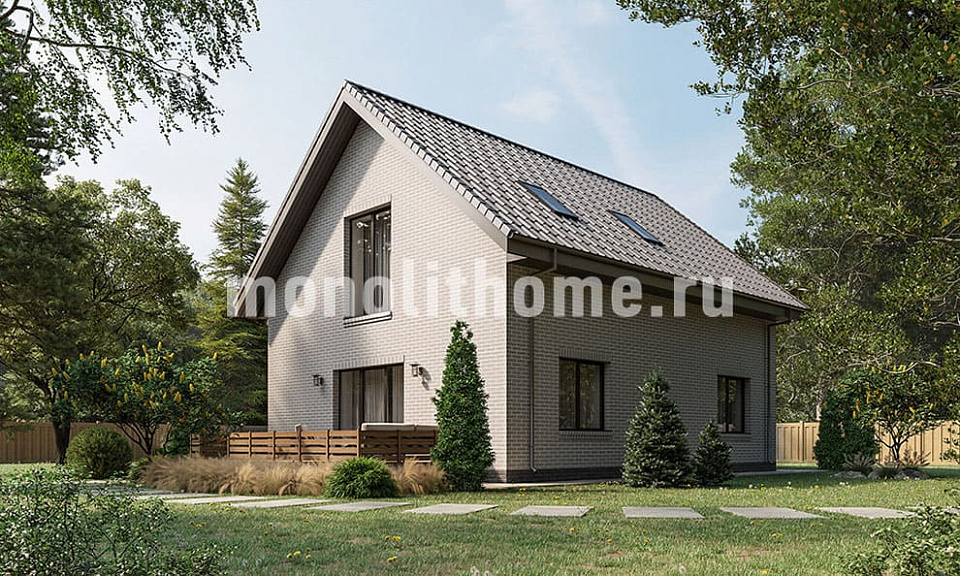 Дом из поризованного кирпича Монтерей одноэтажный с мансардой 10х10