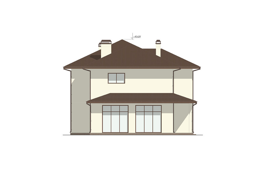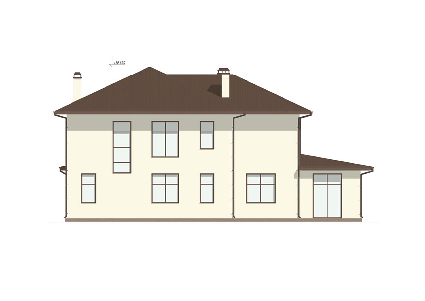 Проектом предусматривается двухэтажное строение с вместительным чердаком. Компоновка помещений выделятся разумностью и учитывает размещение инженерных систем, вид из окон и расположение сторон света. Проект включает 4 уютных спальни и 3 санузла. Полезная площадь всех помещений здания составляет 366 м2, площадь кухонного пространства 9 м2. В этом проекте мы советуем применить вариант фундамента - монолитная лента мелкого заложения утепленная Данный фундамент идеально подходит, когда под домом заметный перепад высоты, или хозяин дома просит приподнять высотную отметку первого этажа над землей. Материал стен дома - монолитный каркас. Наши конструкторы могут переделать проект под другой материал несущих конструкций, архитекторы уточнят планировки этажей и учтут другие пожелания клиента.