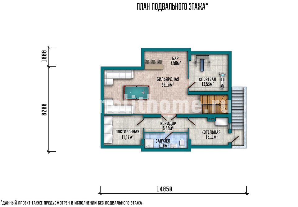 Проектом предусматривается один этаж и уютный мансардный этаж. Планировка жилых помещений характеризуется продуманностью и учитывает размещение инженерных систем, вид из окон и расположение сторон света. Поэтажные планы здания включают 6 удобных спален и 4 санузла. Размер всех помещений составляет 279 м2, площадь кухни 12 м2. В этом коттедже мы предлагаем использовать тип фундамента - монолитная плита с утеплением толщиной 250 мм. Это быстровозводимый и самый экономически выгодный фундамент из всех. Несущие стены данного здания - полнотелый кирпич. По решению заказчика наши конструкторы переделают проект под другой материал, архитекторы актуализируют расположение помещений и учтут другие ваши идеи.