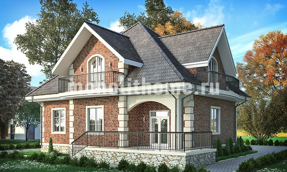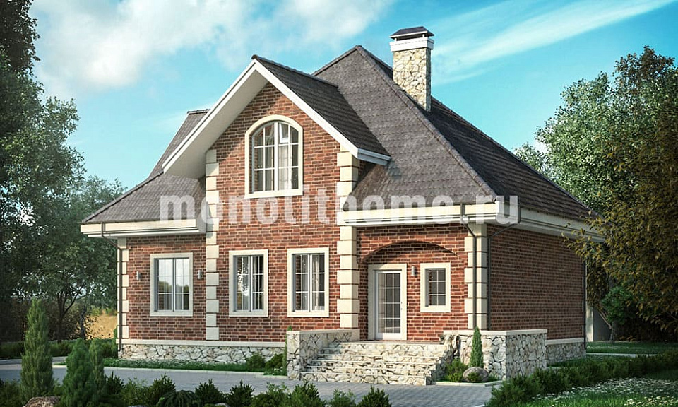 Дом из полнотелого кирпича Алькор-2 одноэтажный с мансардой 13х13