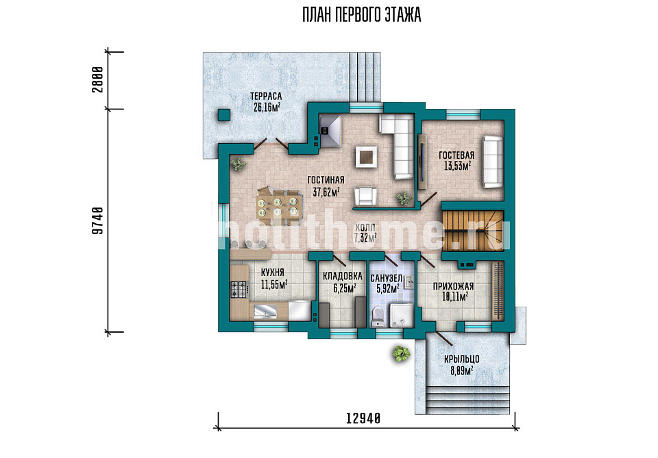 Проект коттеджа недорогого сегмента "Алькор-2" спроектированный нашими конструкторами по рекомендациям заказчика. Очевидным плюсом представленного проекта является неповторимое ощущение уюта, создаваемое функциональным и красивым камином. Помимо эстетического наслаждения камин выступает в качестве выгодного обогревателя, который отлично обогреет помещение промозглыми осенними вечерами.