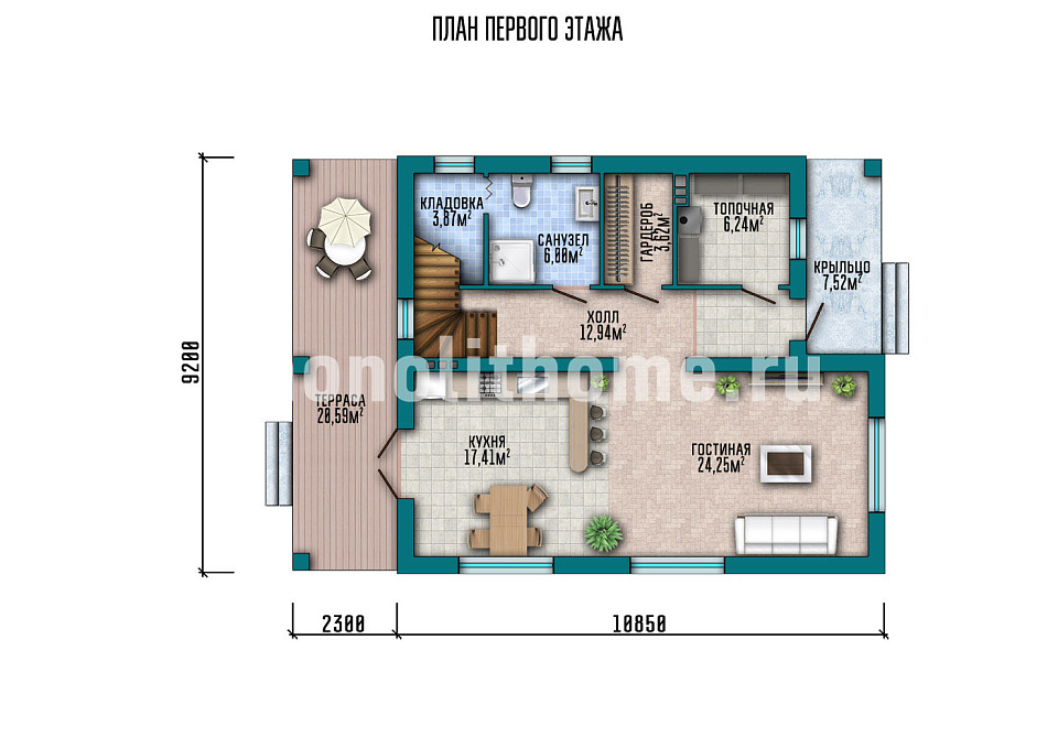 Дом из монолитного полистиролбетона Бах-2 двухэтажный 11х11