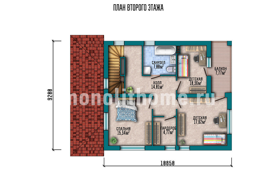 Проект в два полных этажа и функциональный чердак. Планировка комнат отличается функциональностью и учитывает размещение инженерных систем, вид из окон и расположение сторон света. Планировочные решения здания включают 3 удобных спальни и 2 санузла. Планировочная площадь помещений дома составляет 161 м2, размер кухни 17 м2. Для этого проекта мы предусматриваем фундамент - УШП плита. Это самый теплый фундамент, великолепно подходящий для коттеджного строительства в нашей климатической зоне. Стены здания - монолитный полистиролбетон. По вашему решению наши конструкторы изменят проект под другой материал несущих конструкций, архитекторы переработают жилое пространство и учтут другие ваши пожелания.