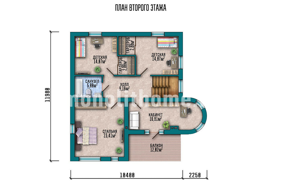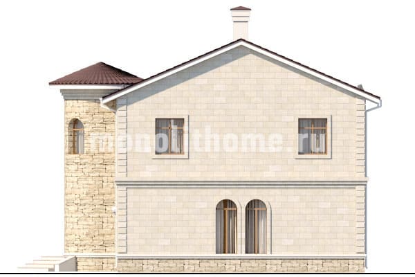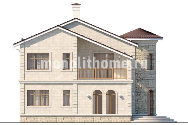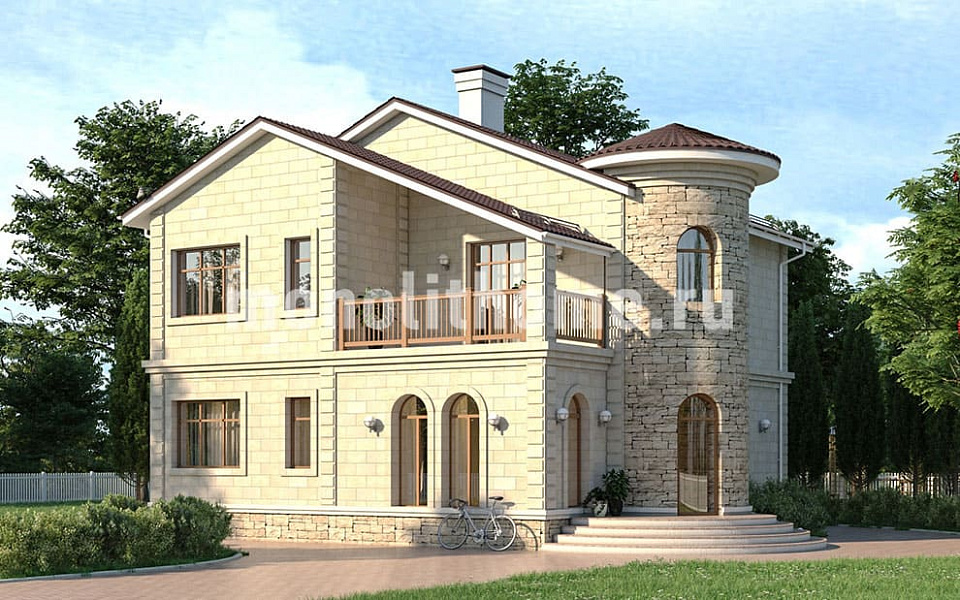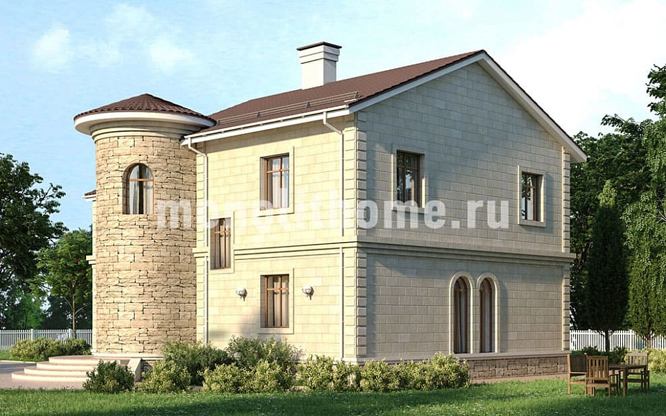 Представляем проект частного дома наиболее популярного ценового диапазона "Вагнер-2" созданный нашими архитекторами по рекомендациям заказчика. Проект этого дома – сочетание искусства и современных технологий. Из-за милой башенки этот дом превращается в детскую мечту многих, а продуманность планировок создаёт комфорт и уют. Также никого не оставит равнодушным большой балкон. На этом просторном балконе вы сможете наслаждаться прекрасным видом или выпить чашку чая.