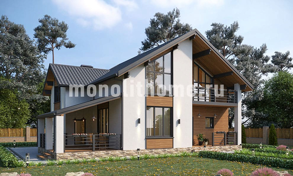 Проект дома оптимального ценового диапазона "Вега-2" реализованный в нашей компании по результатам встречи с заказчиком в нашем офисе. Достоинство данного дома это - впечатление легкости и света внутреннего пространства дома, которое возникает благодаря панорамному остеклению. Считаем необходимым подчеркнуть, что вопреки существующему мнению панорамные окна не ведут к увеличению бюджета на строительство. Современные конструкции позволяют увеличивать размер остекления, не повышая теплопотери дома.