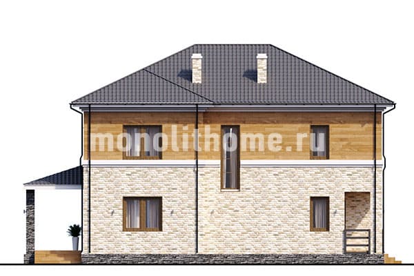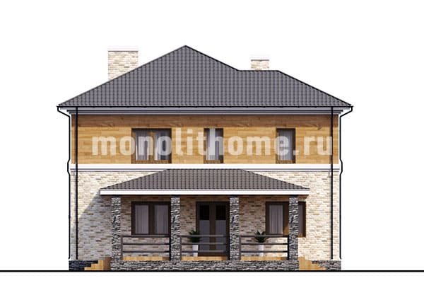 Проектом предусматривается два этажа с вместительным чердачным помещением. Планировка пространства дома выделятся функциональностью и учитывает размещение инженерных систем, вид из окон и расположение сторон света. Планировочные планы здания включают 3 удобных спальни и 3 санузла. Площадь помещений здания составляет 218 м2, размер кухни 19 м2. Для этого проекта мы предлагаем применить вариант фундамента - УШП плита. Это наиболее современный фундамент, оптимально подходящий для индивидуального строительства в нашей климатической зоне. Несущие стены - комбинированные дома. По вашему решению мы можем изменить проект под другой материал несущих конструкций, адаптировать жилое пространство и рассмотреть любые другие ваши пожелания.