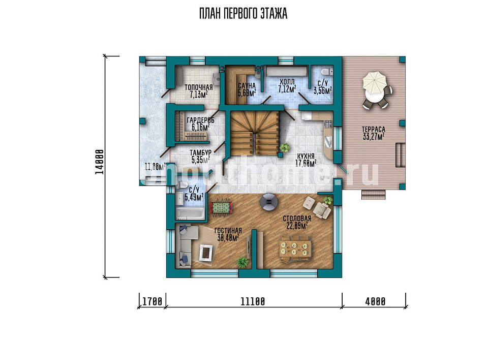 - Размер дома 14х14 м