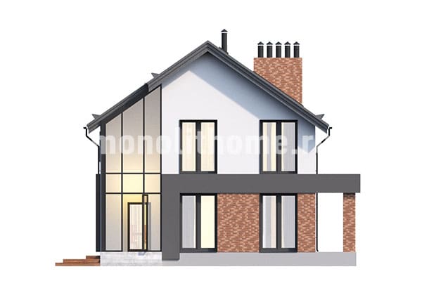 Представляем коттедж недорогого класса "Восток" созданный нашими сотрудниками по рекомендациям заказчика. Очевидный плюс данного коттеджа это - праздничное настроение в интерьерах дома, которое возникает по причине больших светлых окон. Современные конструкции делают возможным увеличение площади остекления, не снижая энергоэффективность дома. Необходимо сказать, что вопреки ошибочному мнению окна с большой площадью остекления не приводят к повышению затрат на строительство.