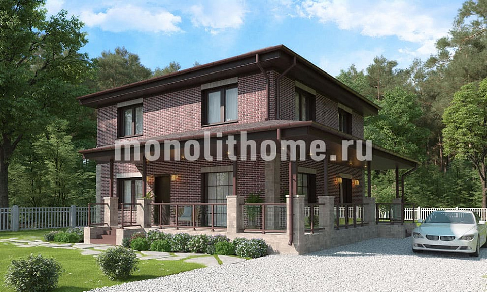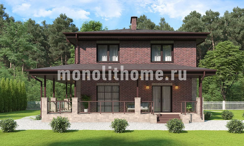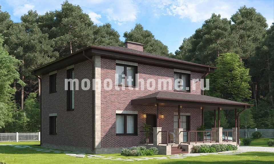 Проект коттеджа оптимального ценового сегмента "Дедал" разработанный в компании Монолит-домстрой по техническому заданию заказчика. Проект этого дома выполнен в классическом ключе, с применением наиболее экономически оправданных технических и планировочных решений. Просторная угловая терраса является отличительной чертой этого дома. На этой замечательной террасе можно устроить романтический ужин на природе большой шумной компанией.