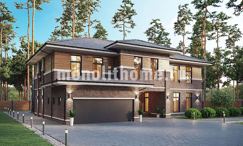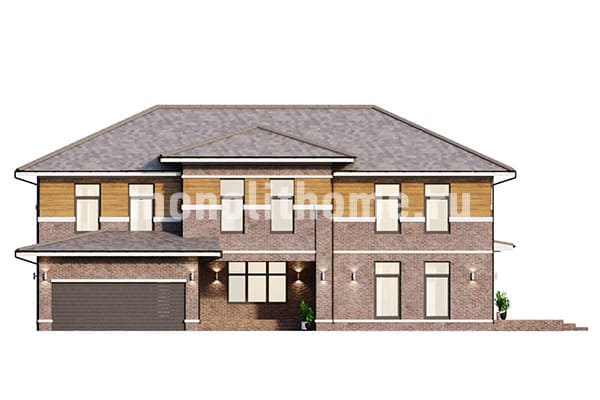 Проектом предусматривается два этажа и комфортная мансарда. Компоновка внутреннего пространства выделятся продуманностью и учитывает размещение инженерных систем, вид из окон и расположение сторон света. Планировка здания включает 4 комфортных спальни и 3 санузла. Площадь здания составляет 430 м2, площадь кухонного пространства 25 м2. В данном случае мы предусматриваем вариант фундамента - бетонная мелкого заложения лента с утеплением. Такой вариант фундамента идеально подходит если в пятне застройки заметный перепад уровня земли, или хозяин требует приподнять над землей высотную отметку пола первого этажа. Материал несущих конструкций данного проекта - поризованный кирпич. Наши конструкторы могут изменить данный проект под другой материал, архитекторы детализируют внутреннее пространство и рассмотрят другие пожелания заказчика.