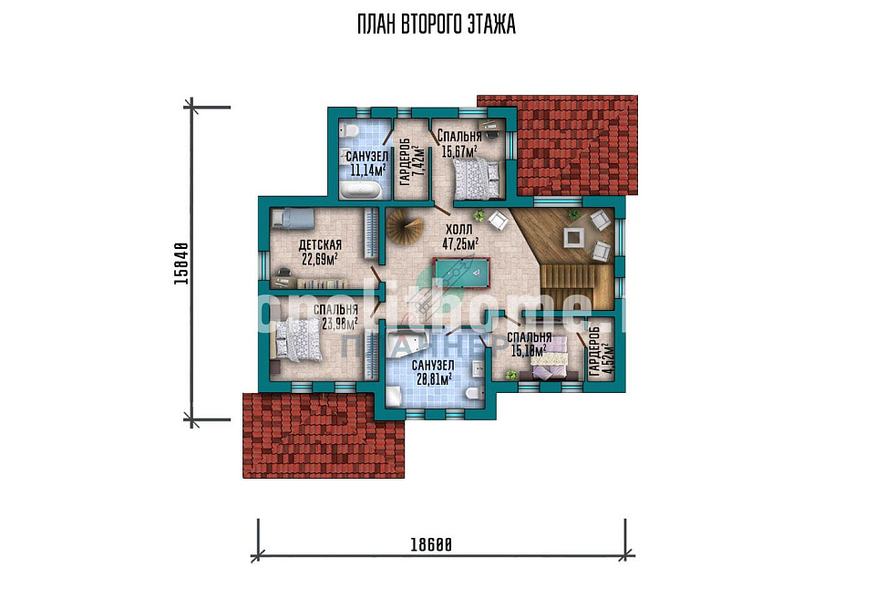 - Размер дома 15х15 м