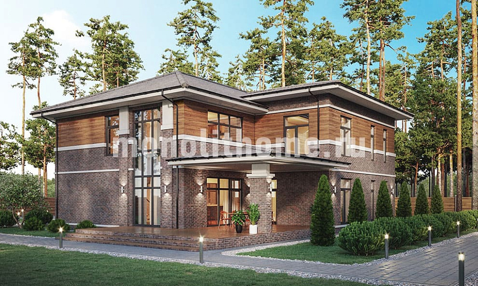 Дом из поризованного кирпича Заречный двухэтажный 15х15