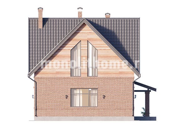 Проект в один полный этаж с функциональной мансардой. Компоновка помещений выделятся разумностью и учитывает размещение инженерных систем, вид из окон и расположение сторон света. Планировочные планы включают 3 комфортных спальни и 2 санузла. Планировочная площадь здания составляет 134 м2, площадь кухни 16 м2. Для этого дома мы советуем использовать вариант фундамента - бетонная плита мелкого заложения толщиной 250 мм. Это быстровозводимый и наиболее дешевый тип фундамента из всех. Несущие стены - щелевой кирпич. По решению заказчика наши конструкторы поменяют данный проект под другой материал стен, архитекторы детализируют планировки и учтут любые другие ваши требования.
