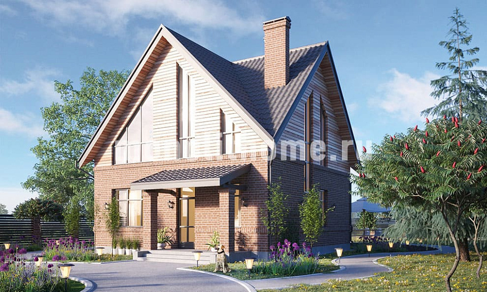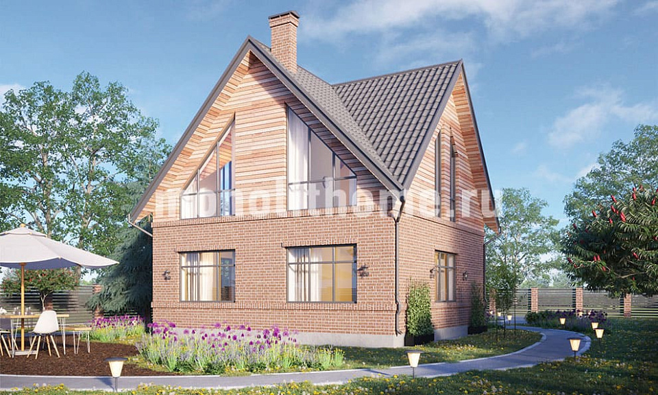 Дом из щелевого кирпича Зенит-2 одноэтажный с мансардой 10х10