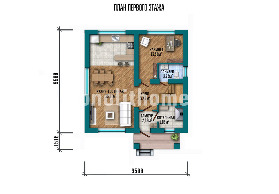 Представляем вашему вниманию проект загородного дома эконом класса "Зенит-2" созданный специалистами компании Монолит-домстрой по рекомендациям заказчика. Важной чертой дома является впечатление воздушности внутри дома, которое возникает по причине панорамному остеклению. Современные конструктивные решения позволяют увеличивать площадь окон без увеличения теплопотерь в доме. Необходимо отметить, что вопреки распространенному мнению окна с большой площадью остекления не приводят к повышению стоимости строительства дома.