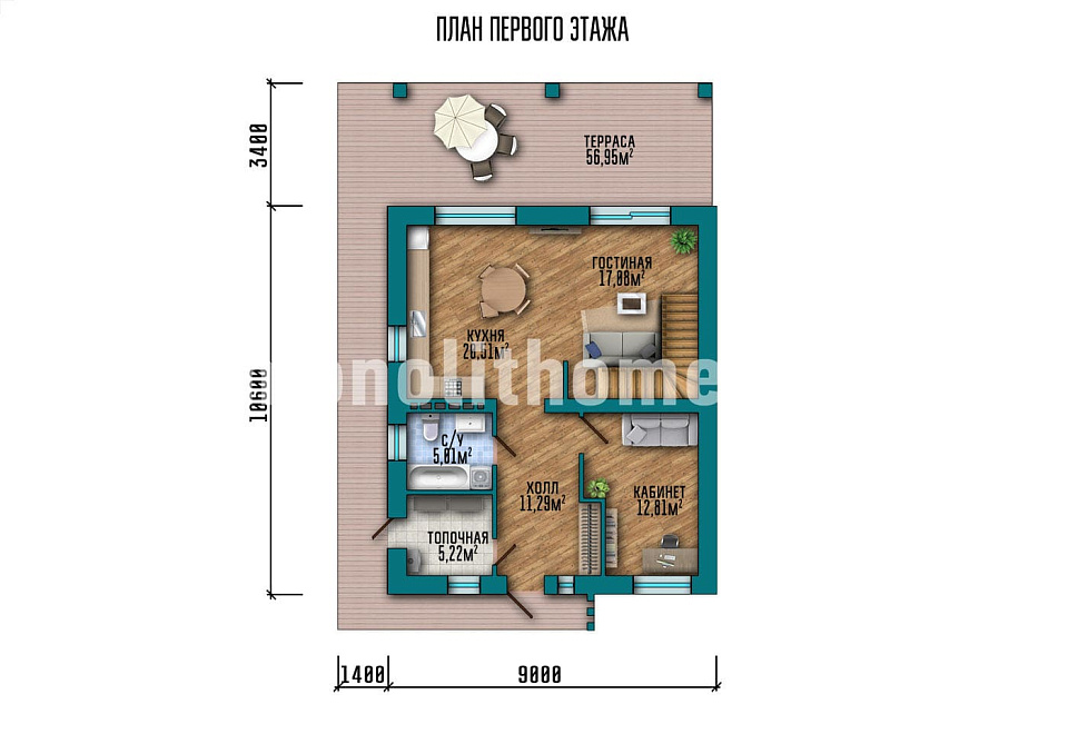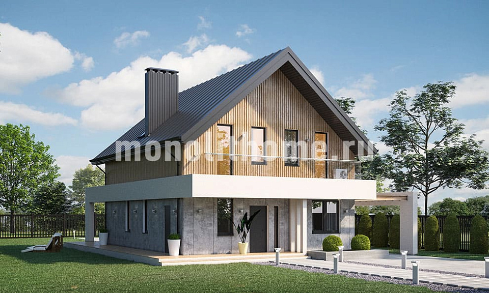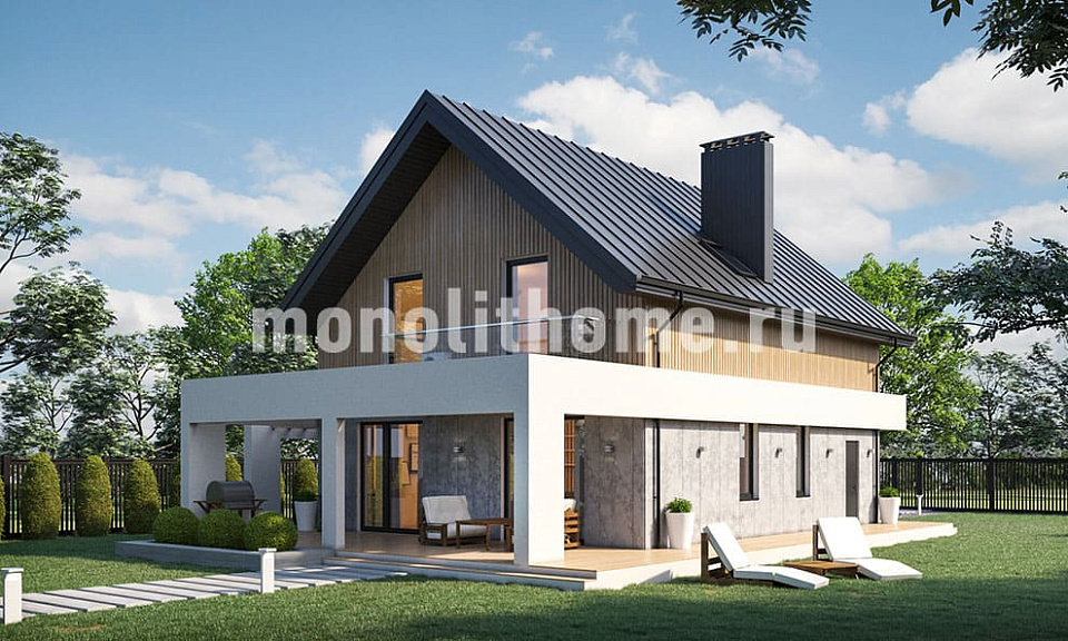 Дом в один полный этаж плюс удобное мансардное помещение. Планировка жилых помещений выделятся функциональностью и учитывает размещение инженерных систем, вид из окон и расположение сторон света. Планировочные планы коттеджа предусматривают 2 уютных спальни и 2 санузла. Размер дома составляет 168 м2, размер кухни 28 м2. В этом доме мы предлагаем применить тип фундамента - утепленная шведская плита. Это самый теплый фундамент, оптимально подходящий для индивидуального строительства в нашей климатической зоне. Несущие стены дома - теплоблоки. По вашему решению мы можем изменить этот проект под другой материал несущих конструкций, детализировать внутреннее пространство дома и учесть любые другие ваши условия.