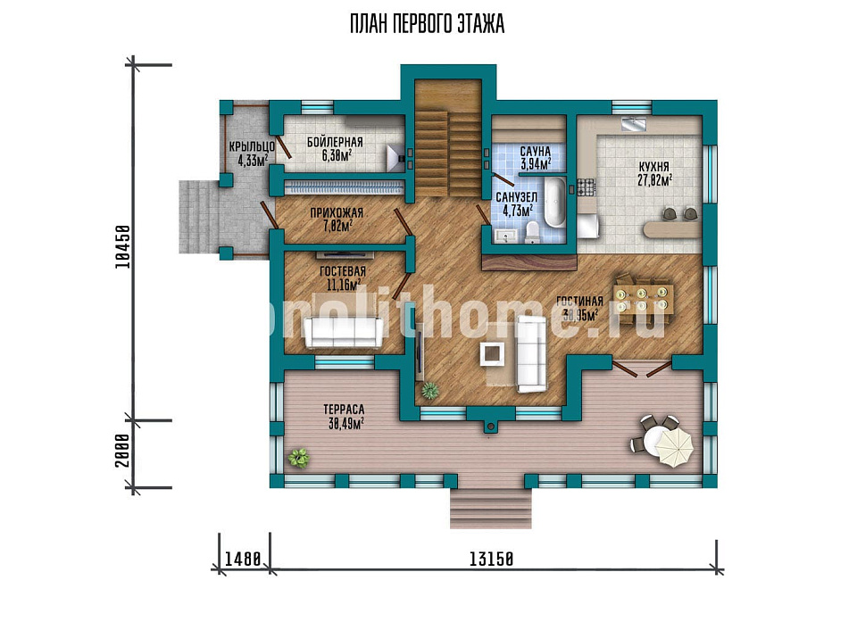 Представляем проект дома недорогого сегмента "Кеплер-2" разработанный нашими архитекторами и конструкторами по техническому заданию заказчика. Очевидный плюс этого дома - великолепная русская парная на дровах. Баня принесет вам и вашим близким долголетие, порадует ароматом дубового веника и вкусным квасом. С древности считается, что баня гарантирует хорошее самочувствие и долголетие.