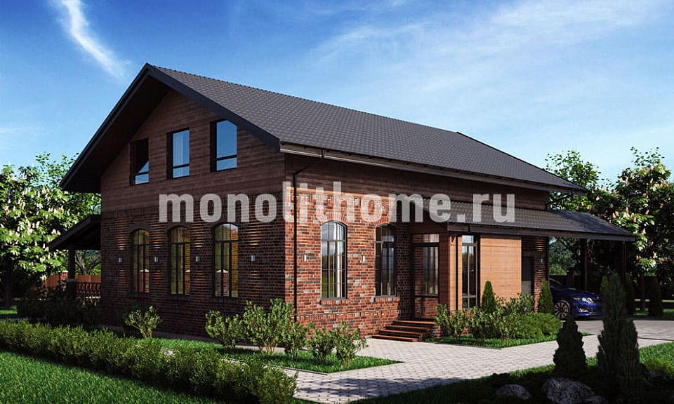 Проектом предусматривается один этаж и уютный мансардный этаж. Планировка помещений выделятся продуманностью и учитывает размещение инженерных систем, вид из окон и расположение сторон света. Поэтажные планы предусматривают 4 уютных спальни и 2 санузла. Полезная площадь помещений коттеджа составляет 224 м2, площадь кухни 17 м2. В данном коттедже мы советуем использовать тип фундамента - монолитная мелко-заглубленная утепленная лента. Такая конструкция фундамента идеально подходит, когда в пятне застройки значительный перепад высоты, или хозяин дома требует приподнять высотную отметку пола первого этажа над землей. Материал стен данного коттеджа - керамический кирпич. В случае необходимости мы можем поменять данный проект под другой материал, переработать планировки помещений и рассмотреть другие ваши условия.