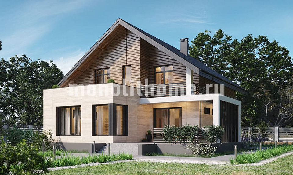 Проект элитного коттеджа "Клэр-2" спроектированный нашими специалистами по результатам встречи с заказчиком в нашем офисе. Важным преимуществом этого дома является праздничное настроение внутри дома, возникающее благодаря огромным окнам. Современные конструктивные решения позволяют увеличивать высоту и ширину окон без увеличения теплопотерь в доме. Необходимо подчеркнуть, что вопреки существующему мнению большие окна не приводят к росту бюджета на строительство.