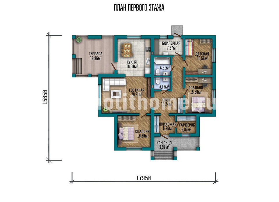 Представляем престижный дом "Колпино" созданный сотрудниками компании Монолит-домстрой по индивидуальному заказу. Конкурентным преимуществом данного проекта является то, что строительство этого дома планируется не более чем в один этаж. Такие проекты хорошо подходят для проживания пожилых людей и людей с ограниченными возможностями. Тем не менее следует заметить, что стоимость строительства одноэтажного дома будет выше по сравнению с аналогичным по площади домом в два и более этажа.