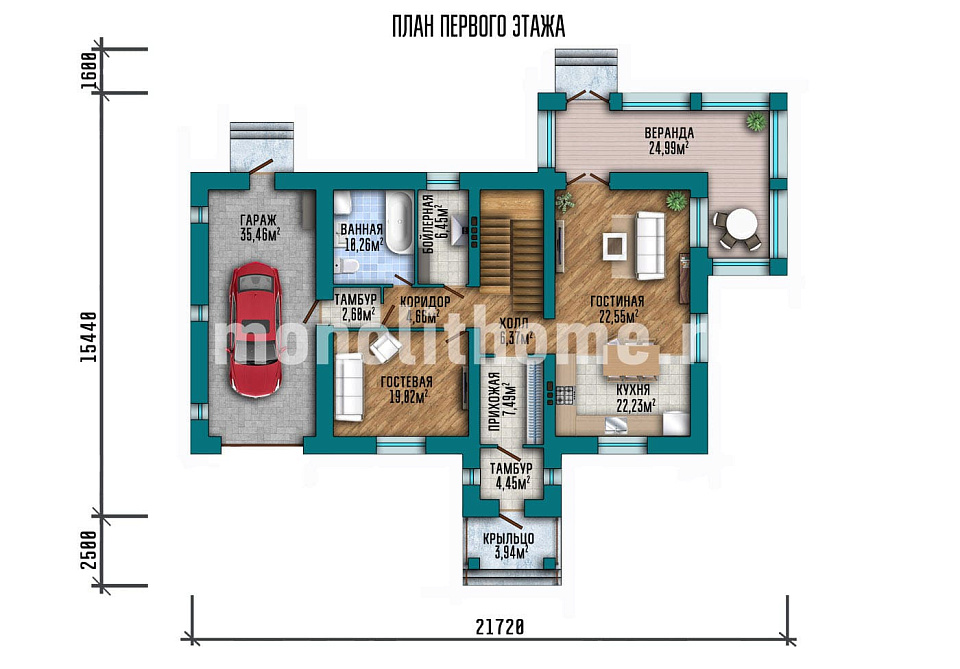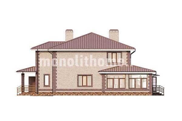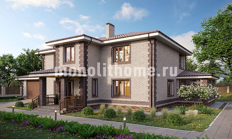 Представляем вашему вниманию элитный дом "Гермес-2" созданный архитекторами компании Монолит-домстрой по результатам встречи с заказчиком в нашем офисе. Очевидный плюс дома это - большая, комфортная терраса. которая гармонизирует внутреннее пространство вашего дома и уличное пространство. На этой просторной веранде можно всей семьёй устроить романтический ужин на свежем воздухе.