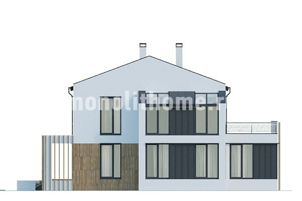 Проект коттеджа премиального ценового сегмента "Корт" созданный нашими специалистами по техническому заданию заказчика. Важное конкурентное преимущество этого проекта - ощущение торжественности внутри дома, которое появляется благодаря огромным окнам. Нужно подчеркнуть, что вопреки существующему мнению большие окна не ведут к росту бюджета на строительство. В настоящее время технологии производства делают возможным увеличение площади окон, не увеличивая теплопотери.