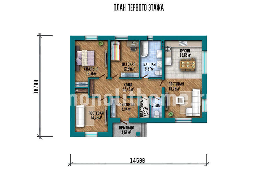 Дом из монолитного полистиролбетона Кристал одноэтажный 9x12