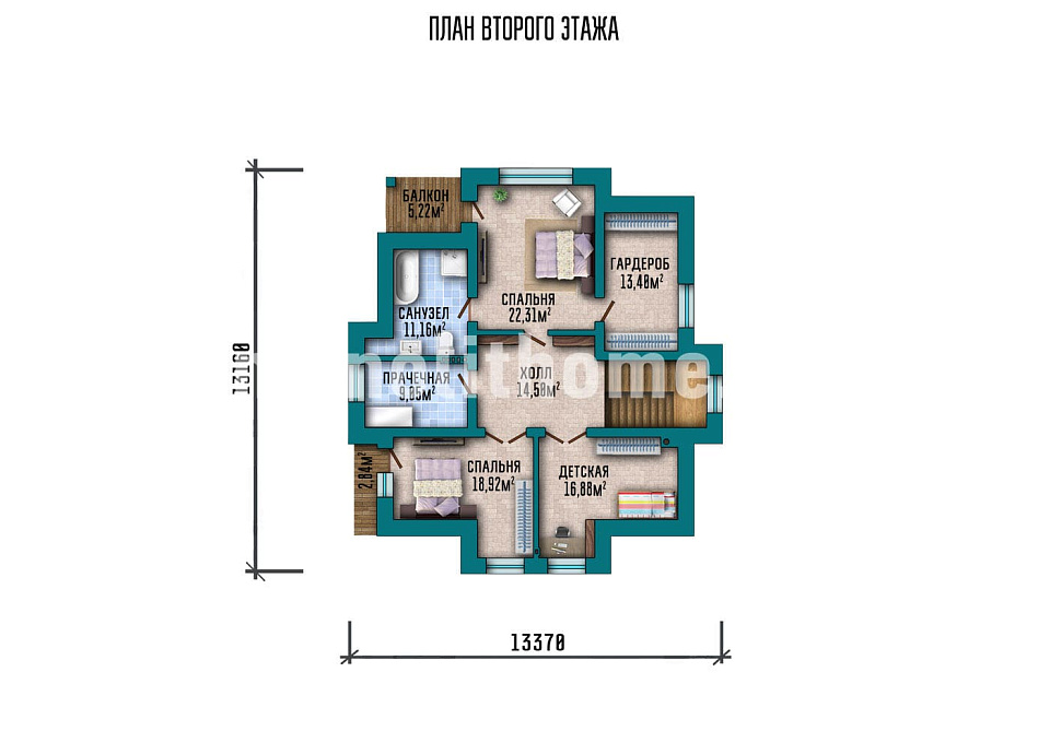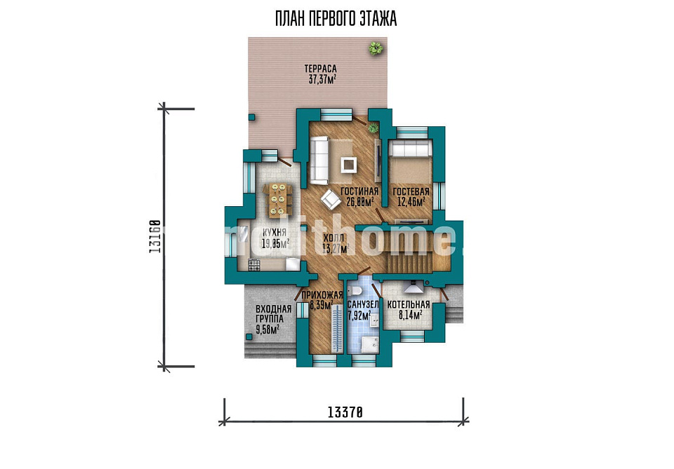 - Размер дома 14х14 м