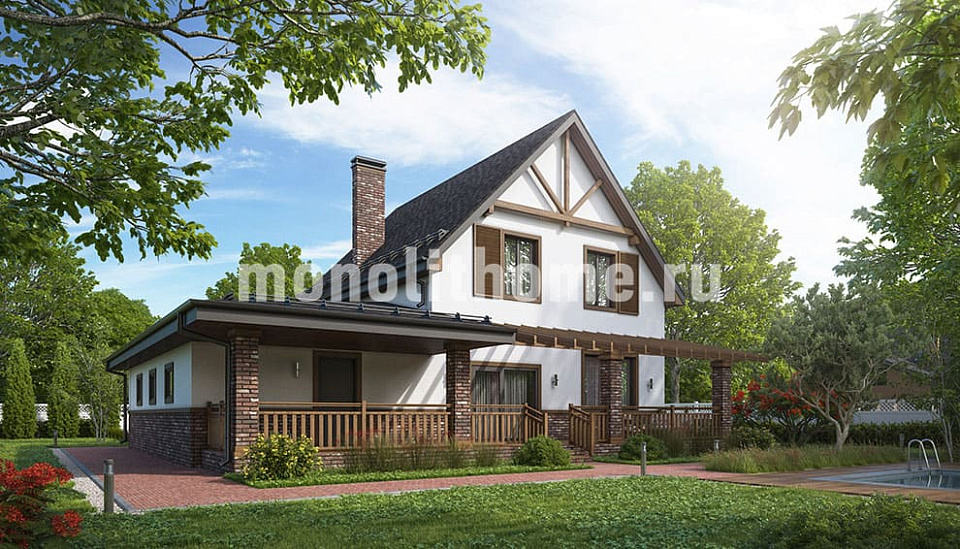 Представляем проект загородного дома высокого ценового диапазона "Кристен" реализованный в компании Монолит-домстрой по рекомендациям заказчика. Эксклюзивная особенность проекта это - просторный, роскошный балкон. На этом удобный балконе вы сможете любоваться природой и выпить кофе всей семьёй. Балкон существенно расширяет жизненное пространство дома без дополнительных затрат.