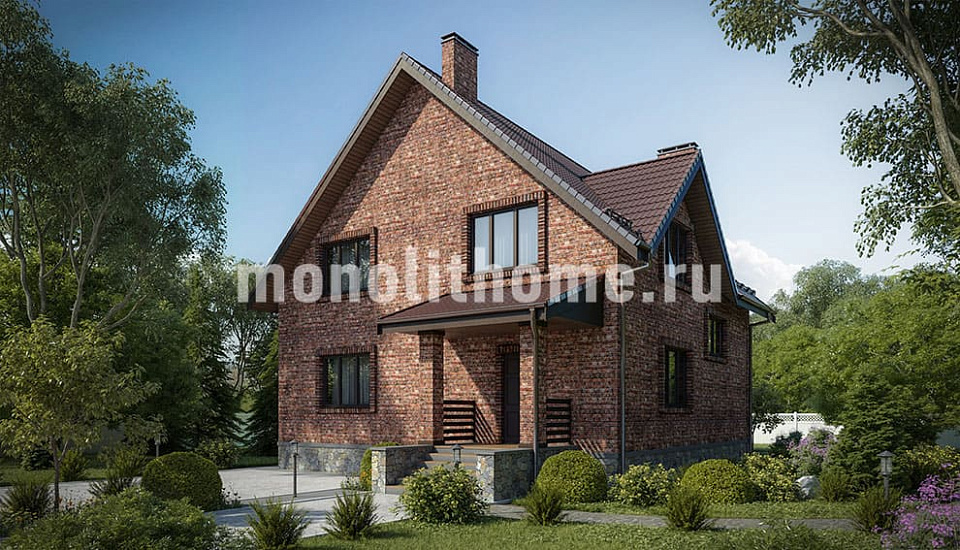 Дом из керамического кирпича Крокус-2 одноэтажный с мансардой 11х11