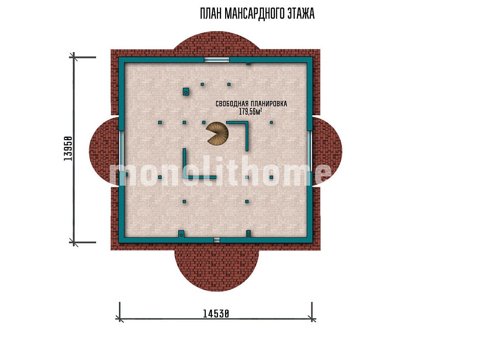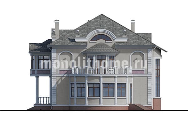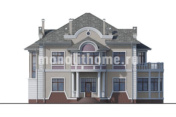 Дом в два этажа и уютное мансардное помещение. Планировка внутренних помещений отличается разумностью и учитывает размещение инженерных систем, вид из окон и расположение сторон света. Поэтажные планы здания включают 4 удобных спальни и 3 санузла. Полезная площадь коттеджа составляет 523 м2, площадь кухни 29 м2. В этом случае мы рекомендуем применить вариант фундамента - бетонная лента мелкого заложения утепленная Такая конструкция фундамента хорошо подходит, когда под домом значительный перепад высоты рельефа, или наш заказчик просит приподнять выше уровень помещений. По проекту материал несущих стен дома - керамический кирпич. По решению заказчика мы можем поменять проект под другой материал несущих конструкций, адаптировать планировки и рассмотреть другие пожелания заказчика.