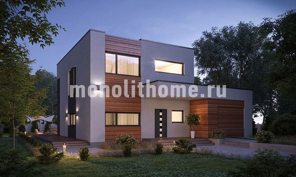 Представляем стильный дом "Кудрино-2" реализованный сотрудниками компании Монолит-домстрой по эскизам заказчика. Очевидное достоинство этого коттеджа - ощущение торжественности внутри дома, которое возникает благодаря большим светлым окнам. В настоящее время технологии делают возможным увеличение высоты и ширины остекления, не снижая энергоэффективность дома. Необходимо отметить, что вопреки распространенному мнению большие окна не приводят к росту затрат на строительство.
