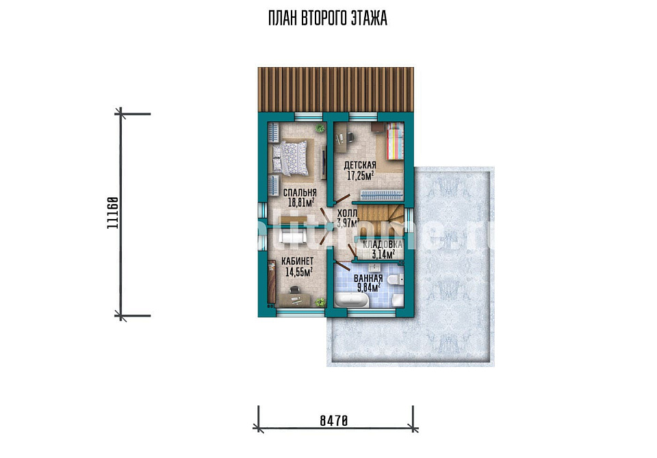 Проектом предусматривается два этажа с плоской крышей из ПВХ мембраны. Планировка внутренних помещений выделятся разумностью и принимает во внимание размещение инженерных систем, вид из окон и расположение сторон света. Проектом предусматривается 2 комфортных спальни и 2 санузла. Полезная площадь помещений дома составляет 198 м2, размер кухни 12 м2. В этом проекте мы рекомендуем применить фундамент - бетонная лента мелкого заложения с утеплением ЭППС Этот фундамент идеально подходит если на участке большой перепад высоты рельефа, или наш заказчик хочет поднять выше уровень первого этажа. Материал несущих конструкций данного коттеджа - керамический кирпич. В случае необходимости мы можем изменить этот проект под другой материал стен, переработать жилое пространство и учесть другие ваши пожелания.
