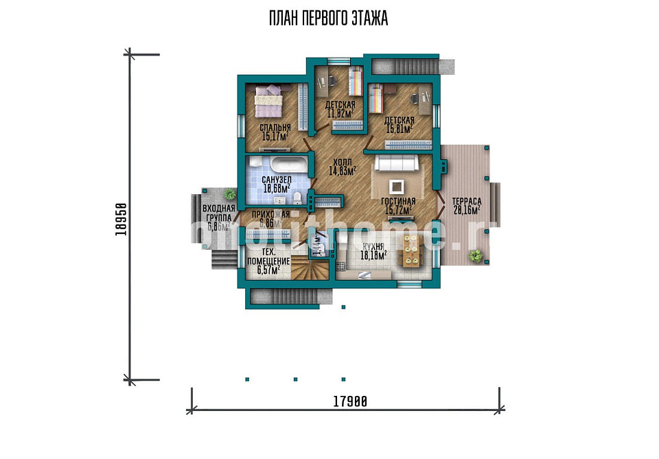 - Размер дома 15х15 м
