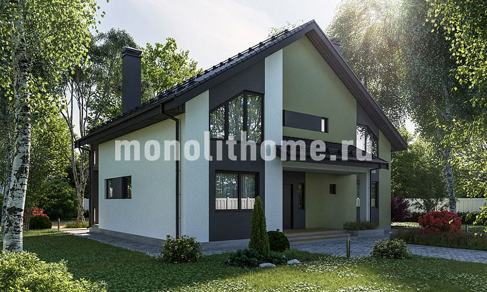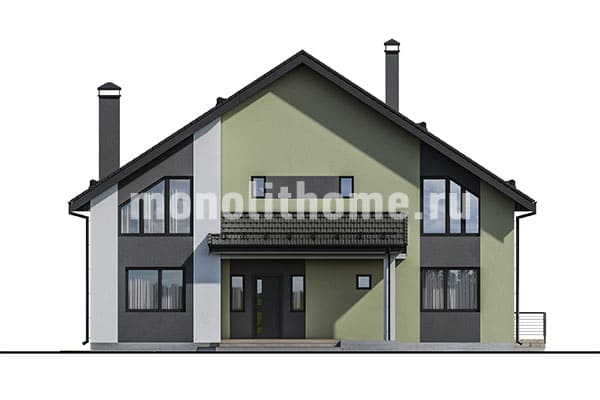 Проектом предусматривается одноэтажный коттедж с практичной мансардой. Планировка помещений отличается продуманностью и учитывает размещение инженерных систем, вид из окон и расположение сторон света. Планировочные планы включают 4 комфортных спальни и 2 санузла. Размер дома составляет 264 м2, площадь кухонного пространства 13 м2. В данном коттедже мы предусматриваем тип фундамента - УШП фундамент. Это самый современный фундамент, идеально подходящий для загородного строительства в нашей климатической зоне. Материал несущих стен данного проекта - газосиликат. По вашему решению наши конструкторы переделают данный проект под другой материал стен, архитекторы адаптируют расположение помещений и учтут любые другие требования клиента.