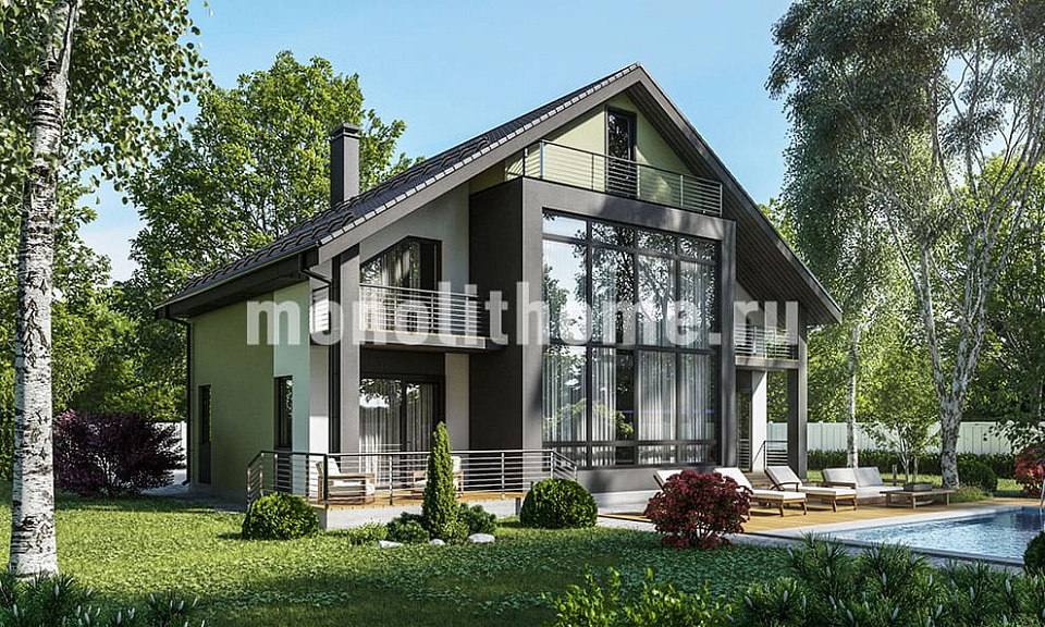 Дом из газосиликата Нептун одноэтажный с мансардой 13х13
