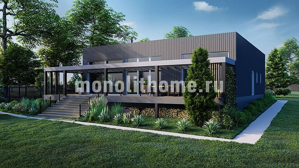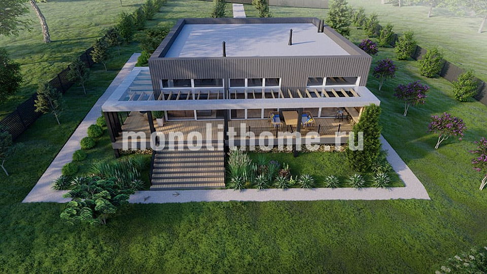 Проект коттеджа VIP класса "Овен" реализованный в компании Монолит-домстрой по техническому заданию заказчика. Уникальная изюминка данного дома это - праздничное настроение в интерьерах дома, возникающее благодаря большим светлым окнам. Необходимо сказать, что вопреки широко распространенному мнению панорамные окна не приводят к увеличению цены за строительство дома в целом. В настоящее время технологии делают возможным увеличение площади остекления, не повышая теплопотери дома.