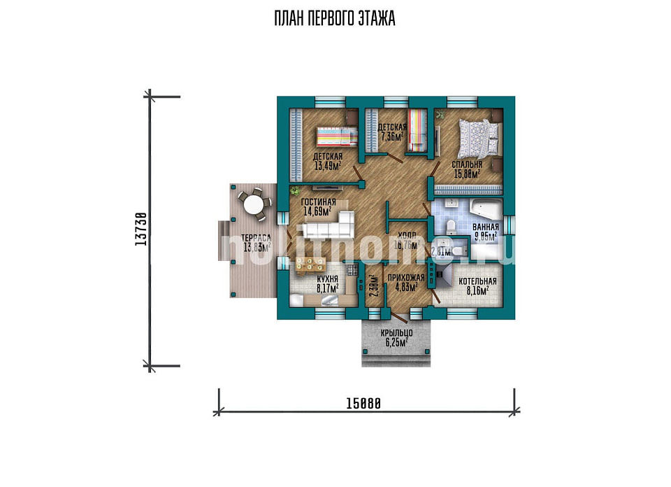 Проект дома оптимального ценового сегмента "Орион-2" созданный нашими архитекторами по рекомендациям заказчика. Основным достоинством представленного дома является то, что строительство этого коттеджа планируется не более чем одноэтажным. Одноэтажные дома хорошо подходят для пребывания людей с ограниченными возможностями и людей преклонного возраста. Тем не менее нужно сказать, что стоимость строительства одноэтажного дома будет выше по сравнению с аналогичным по площади домом в два и более этажа.