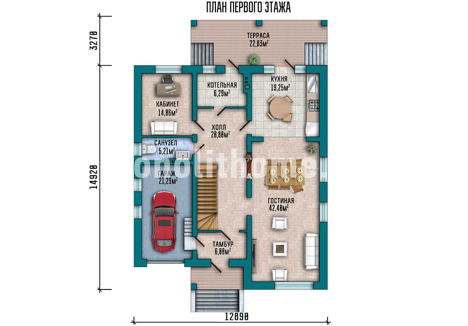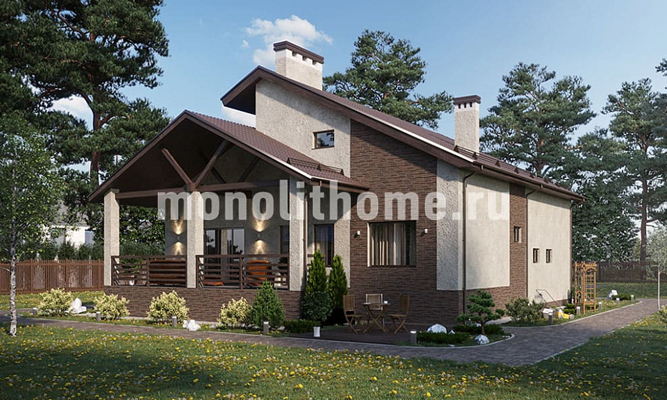 Проект в один полный этаж с удобной мансардой. Компоновка внутреннего пространства выделятся продуманностью и учитывает размещение инженерных систем, вид из окон и расположение сторон света. Планировочные решения предусматривают 3 уютных спальни и 3 санузла. Планировочная площадь помещений составляет 364 м2, размер кухни 19 м2. Для этого дома мы предлагаем применить вариант фундамента - монолитная армированная плита толщиной 300 мм. Это надежный и наиболее экономически выгодный фундамент из всех. Стены данного коттеджа - керамический кирпич. По решению заказчика мы можем поменять проект под другой материал несущих конструкций, актуализировать внутреннее пространство дома и учесть любые другие требования заказчика.