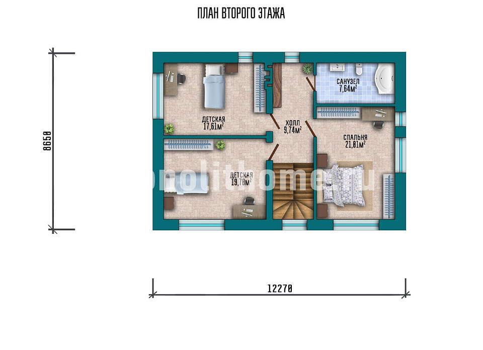 Проектом предусматривается двухэтажное строение с плоской крышей из ПВХ мембраны. Компоновка внутреннего пространства выделятся функциональностью и принимает во внимание размещение инженерных систем, вид из окон и расположение сторон света. Проектом предусматривается 3 комфортных спальни и 2 санузла. Планировочная площадь помещений составляет 195 м2, размер кухонного пространства 24 м2. В этом доме мы рекомендуем применить тип фундамента - утепленная шведская плита. Это самый теплый фундамент, оптимально подходящий для индивидуального строительства в нашем холодном климате. Материал несущих стен здания - керамзитобетон. По решению заказчика наши конструкторы изменят данный проект под другой материал стен, архитекторы уточнят расположение помещений и рассмотрят любые другие пожелания клиента.