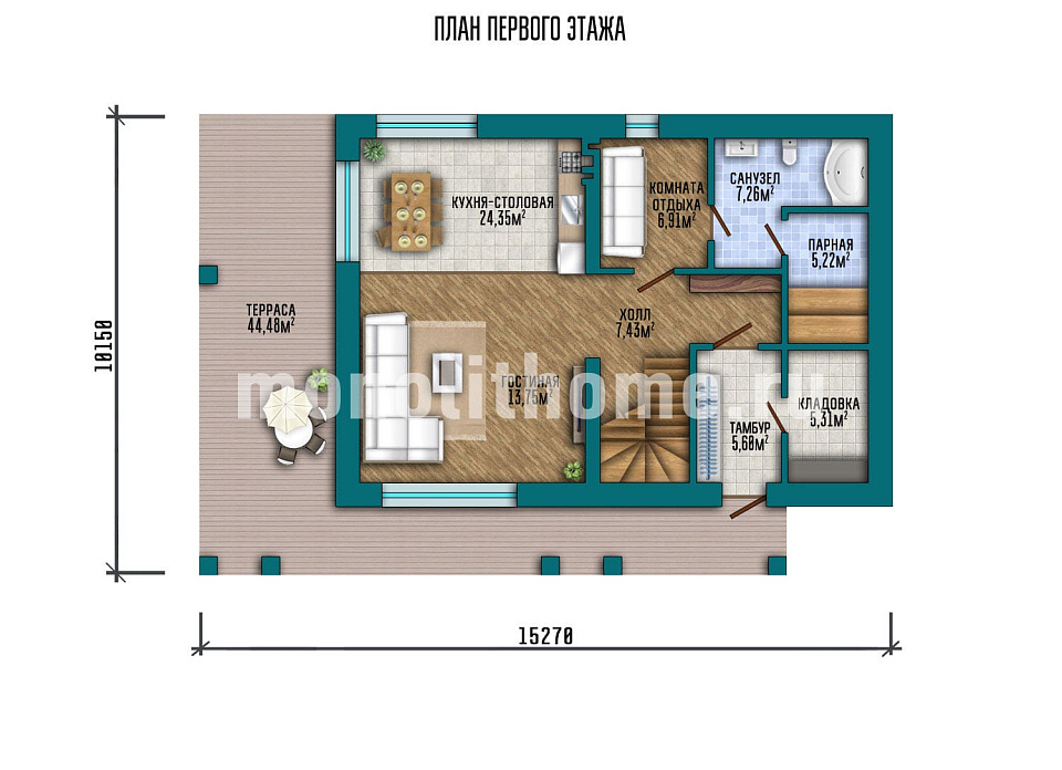 Представляем вашему вниманию проект частного дома оптимального ценового диапазона "Париссо" спроектированный в компании Монолит-домстрой по техническому заданию заказчика. Очевидным плюсом данного проекта является впечатление воздушности в интерьерах дома, возникающее благодаря большой поверхности остекления. Современные конструктивные решения делают возможным увеличение высоты и ширины окон, не уменьшая энергоэффективность дома. Считаем необходимым сказать, что вопреки широко распространенному мнению панорамные окна ведут к уменьшению затрат на строительство.