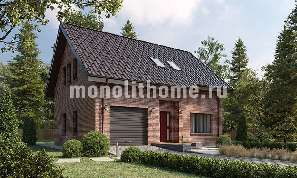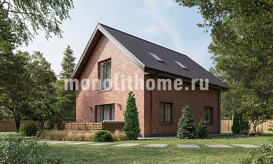 Дом из щелевого кирпича Пермь-2 одноэтажный с мансардой 11х11