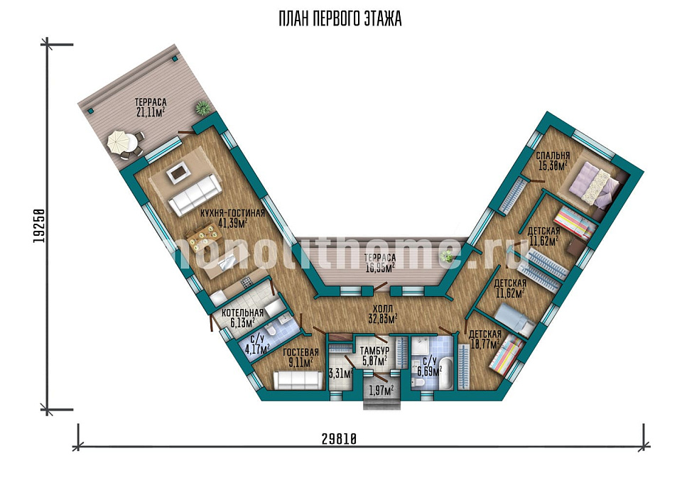 Коттедж в один этаж плюс удобный чердак. Планировка внутреннего пространства характеризуется продуманностью и учитывает размещение инженерных систем, вид из окон и расположение сторон света. Проектом предусматривается 4 комфортных спальни и 2 санузла. Размер помещений составляет 178 м2, размер кухни 20 м2. В данном случае мы советуем использовать вариант фундамента - монолитная лента мелко-заглубленная с утеплением ЭППС Такой фундамент оптимально подходит, когда под домом существенный перепад уровня земли, или заказчик просит приподнять уровень помещений первого этажа выше над землей. Материал несущих конструкций данного проекта - монолитный каркас. По вашему решению наши конструкторы поменяют данный проект под другой материал, архитекторы переработают планировки этажей и учтут любые другие идеи заказчика.