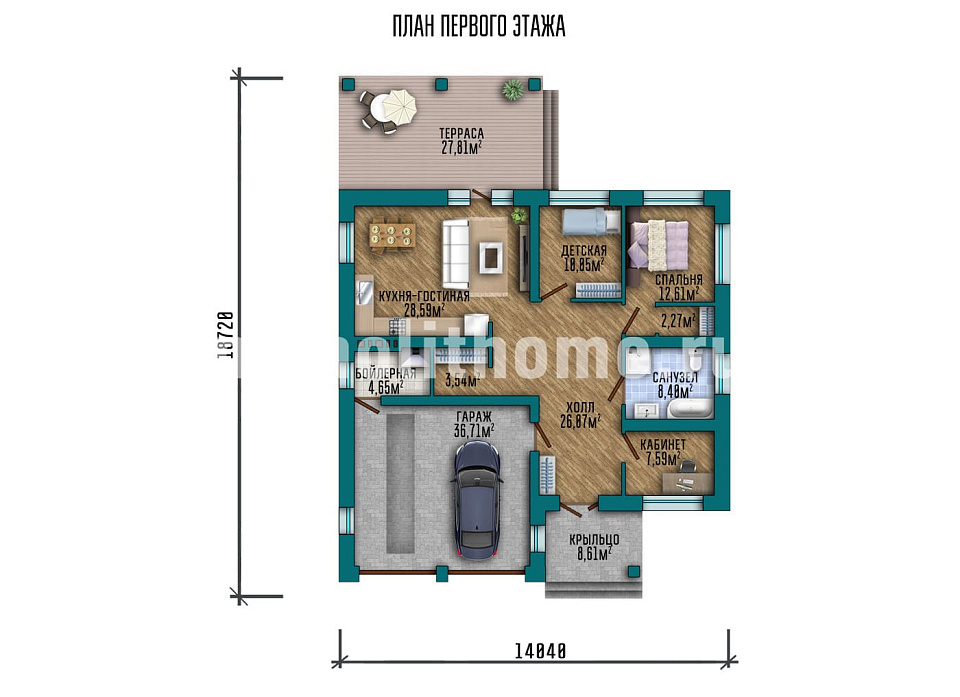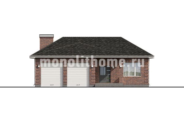 Проект эксклюзивного коттеджа "Прима" спроектированный нашими специалистами по эскизам заказчика. Индивидуальная черта данного одноэтажного дома это - вместительный теплый гаражный бокс на два автомобиля. Это хороший выбор для большой семьи, которая владеет не одним автомобилем. Просторная площадь гаража позволит установить мойку для вашей машины. Такой гараж позволит с легкостью разместить мотоцикл или квадроцикл, отыскать место для инструмента и садовой техники.
